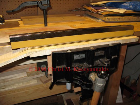 Once the epoxy has dried, level the top of the neck assembly with a straight edge with sandpaper glued to the bottom.