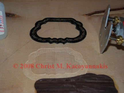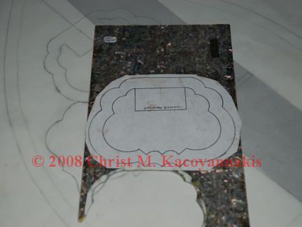 Glue the rosette design onto your inlay material and cut it out with a jeweler’s saw. Use the same process to cut out the pickguard.